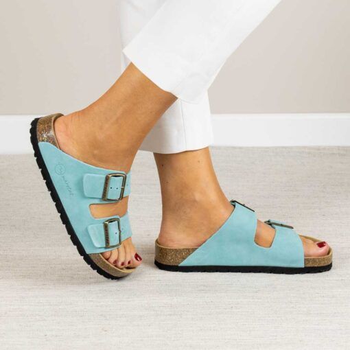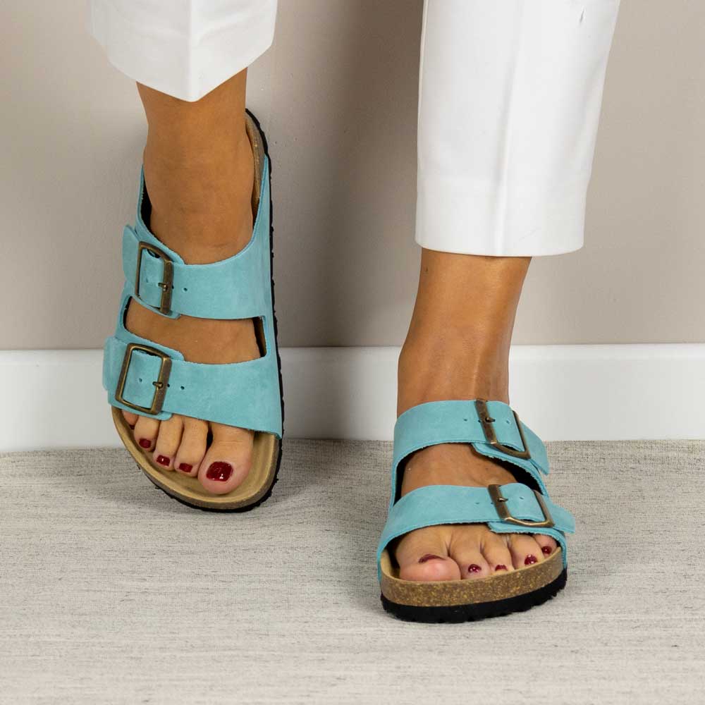 Su diseño de dos tiras con hebilla ajustable permite un ajuste personalizado