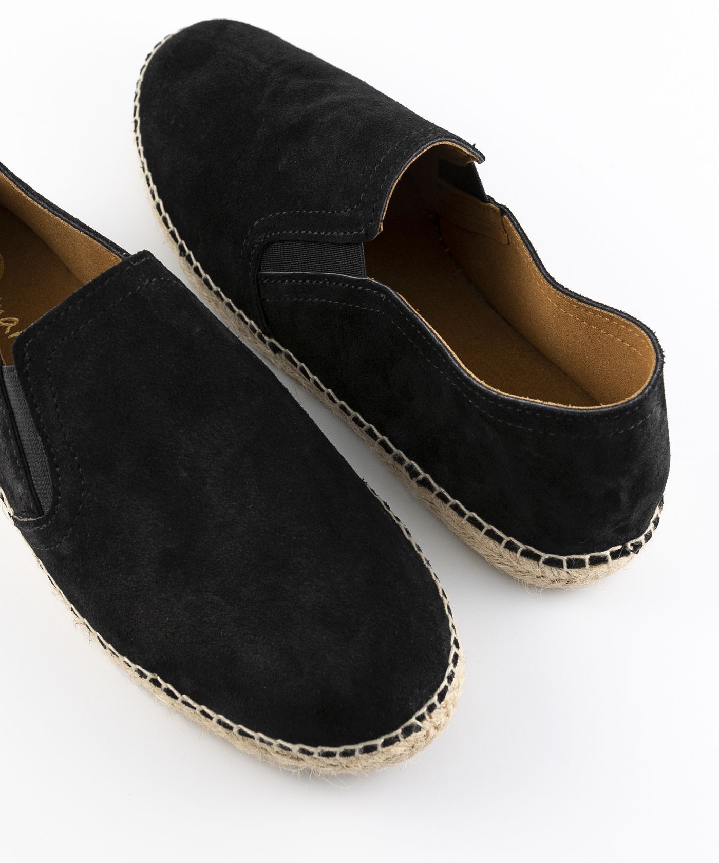Alpargata plana de hombre confeccionada en serraje, con elásticos laterales, adaptándose a todos los pies. Suela vulcanizada de yute natural y caucho, forrada con piel y plantilla de látex ofreciendo mayor confort al caminar. Altura de suela de 2 cm. Hechas totalmente a mano en España.