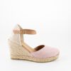 Alpargata con cuña elaborada en serraje . Suela vulcanizada de yute teñido y caucho, forrada con microfibra y plantilla conford, ofreciendo mayor confort al caminar. Altura de 9 cm, cuña de 7 cm y plataforma de 2 cm. Hechas totalmente a mano en España.