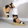 Alpargata con cuña elaborada en serraje. Suela vulcanizada de yute teñido y caucho, forrada con microfibra y plantilla de látex, ofreciendo mayor confort al caminar. Altura de 6 cm, cuña de 3 cm y plataforma de 3 cm. Hechas totalmente a mano en España.