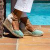 - Composición de la suela: Yute teñido y caucho vulcanizado